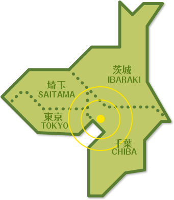 千葉県船橋市、市川市を中心に、その他千葉県、東京都、埼玉県の一部エリアも対応しております。